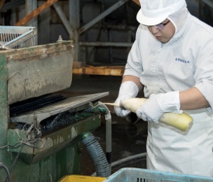 もともと東北地方の中長なすを徳島で栽培したところ、表皮が柔らかく甘みのある絶品のなすがとれました。それをさらに研究し、温暖な気候と吉野川の清流で育て、親指ほどの大きさで収穫して、漬物にしたのが「阿波のちびなす」。独自の技術により、旬のちびなすの漬物の長期保存に成功。一年中、全国へ生の浅漬けをお届けしています。